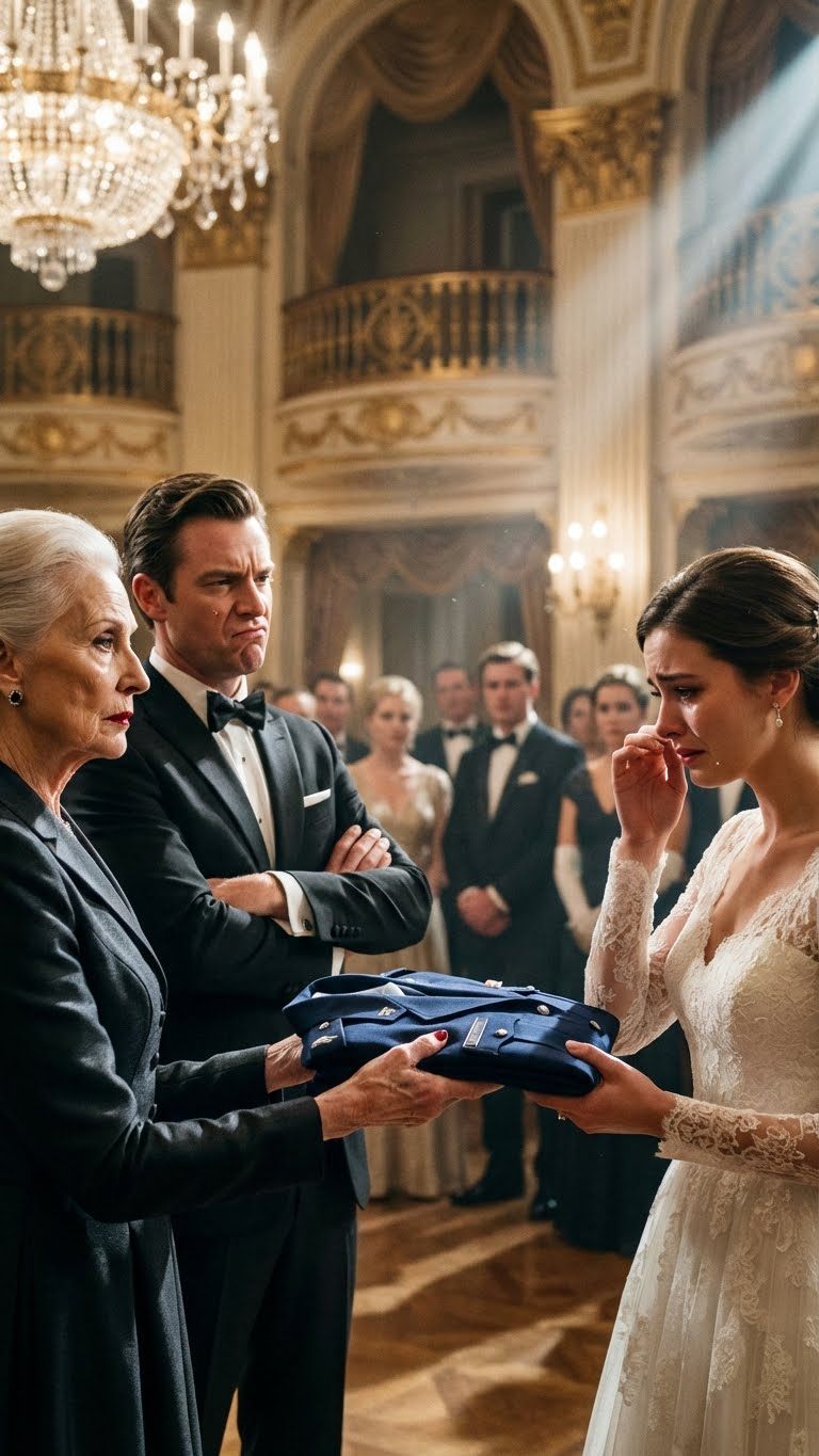 Ces mots s’échappèrent de la bouche de mon gendre, dégoulinant d’une arrogance venimeuse qui glaça instantanément l’atmosphère chaleureuse et parfumée de la grande salle de bal de Dallas. Il brandit l’uniforme de la soubrette — une robe bon marché en polyester bleu marine, raide et ornée d’un tablier blanc amidonné — que sa mère venait d’offrir à ma fille, Molly, le jour de son propre mariage.