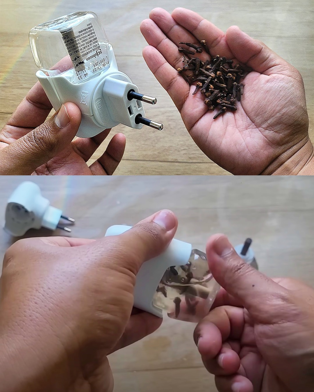 Diese Methode nutzt die natürlichen Eigenschaften von Nelken , kombiniert mit Alkohol und ätherischen Ölen, um ein Abwehrmittel herzustellen, das in elektrischen Diffusoren (wie den leeren Flaschen, die normalerweise weggeworfen werden) wirkt. Anstatt diese Flaschen wegzuwerfen, können Sie sie mit einem wirksamen natürlichen Gebräu füllen, das nicht nur Insekten abwehrt, sondern Ihrem Zuhause auch einen frischen und angenehmen Duft verleiht.