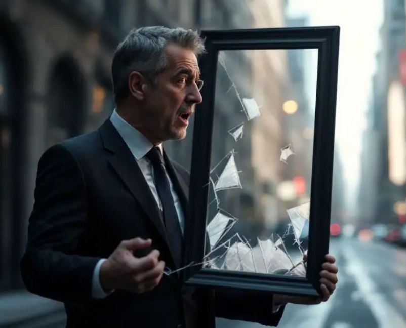 El hombre, al verlo tan cerca, dejó caer de golpe la vieja bolsa de tela que sostenía. Un sonido sordo. De ella rodó, con un crujido metálico, un marco de fotos de madera gastada, ahora roto y con el cristal estrellado. La imagen dentro, sin embargo, permanecía intacta.