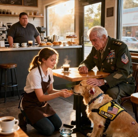 Elle avait simplement voulu aider un ancien combattant et son chien… et fut pourtant renvoyée sur-le-champ. Mais quelques minutes plus tard, l’entrée soudaine de plusieurs Marines allait figer tout le café — et renverser la situation d’une manière que personne n’aurait imaginée.