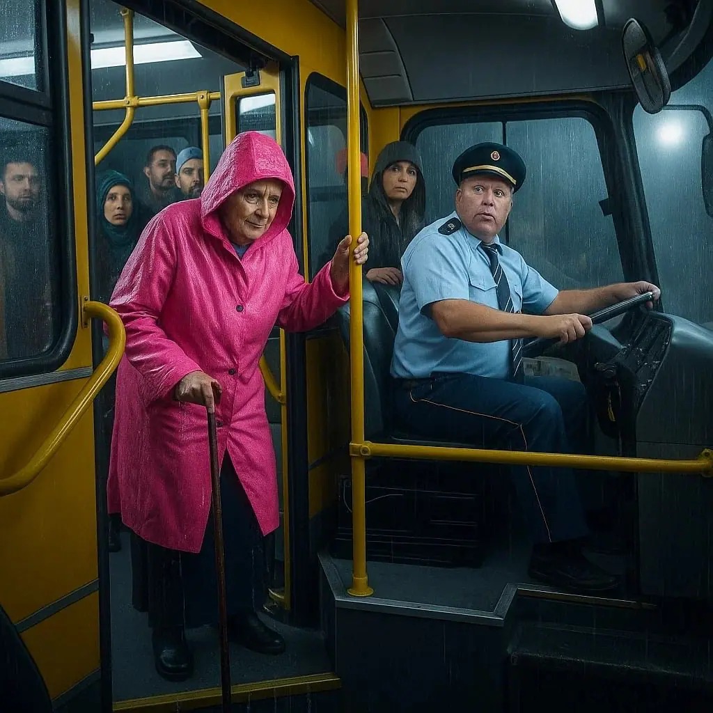 Dans un car usé, le chauffeur, David Morel, fit une halte à l’intersection de la rue des Acacias et de la 3e Avenue. Une silhouette frêle se dessina à la porte : une vieille dame, enveloppée dans un manteau noir trempé, les mains tremblantes. Elle monta lentement les marches, le visage marqué par le temps.
