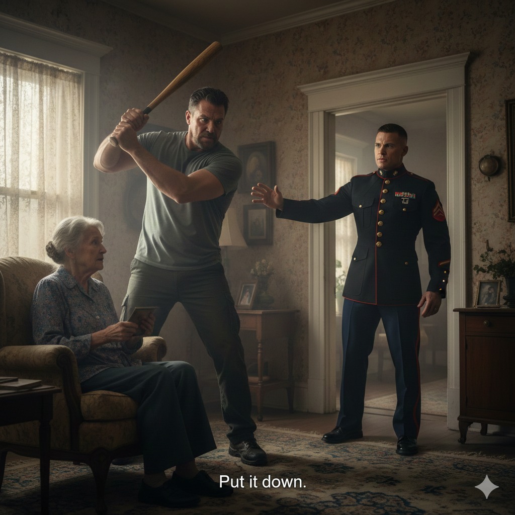 Dans un mouvement fulgurant qui défiait son âge, Sam traversa le tapis. Ce n’était pas une précipitation maladroite, mais une réduction de distance mesurée et tactique. Avant même que la batte n’ait parcouru quinze centimètres, la main de Sam, large et calleuse, s’agrippa au poignet avant de Brad. Son autre main serra le manche de la batte, redirigeant l’énergie.