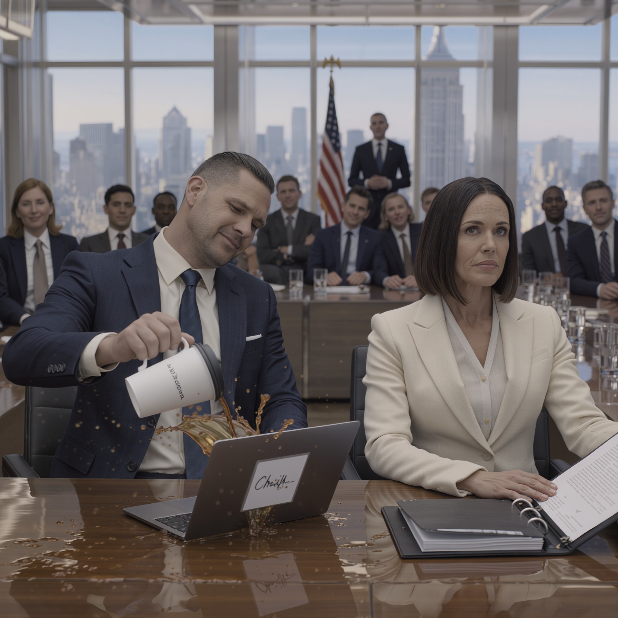 Ni un faux pas, ni une erreur : un arc net et intentionnel de liquide sombre inondant le clavier au centre du bureau de direction. Le son était doux, enveloppant, définitif. Chris ne s’excusa pas. Il ne parut même pas inquiet.
