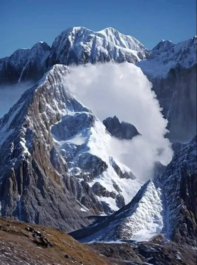 Dans cette illusion, les pics et les nuages se combinent pour former les ailes d’un aigle en plein vol, symbolisant un esprit méthodique et perspicace.