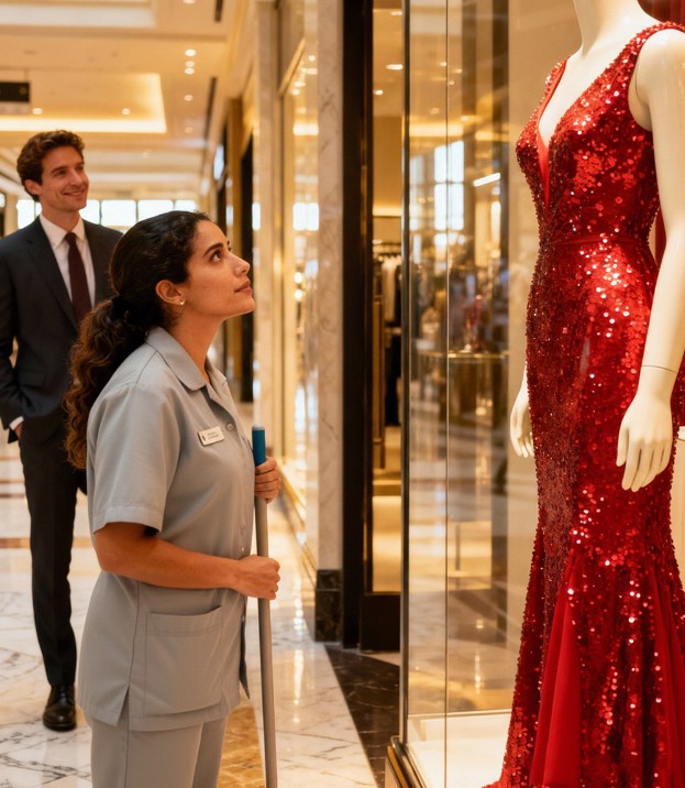 Camila esquissa un rire sec, presque cruel. Elle se rapprocha d’Alejandro et s’agrippa à son bras, comme pour marquer son territoire. Son regard glissa sur Mariana, lentement, de la tête aux pieds, s’attardant sur sa tenue simple, sur ses chaussures modestes, sur le chariot de nettoyage derrière elle.