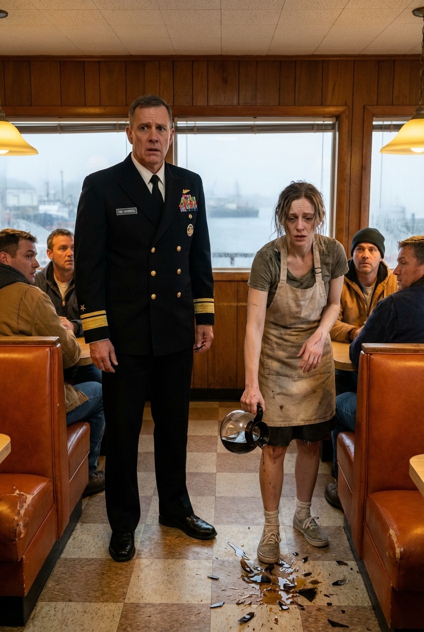 Le restaurant se tut. Le souffle était suspendu. Et dans l’embrasure de la porte se tenait l’amiral Rowan Calder – un homme forgé par la discipline, les océans et les guerres dont la plupart des gens n’entendent parler que dans les gros titres édulcorés des journaux. Son uniforme n’était pas un vêtement ; c’était une affirmation. Sa présence n’était pas un hasard ; c’était un jugement.